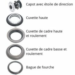 La cage pour roulement à billes maintient les billes ensemble pour faciliter le remontage du jeu de direction. Nettoyez d’abord minutieusement le tube de direction de votre cadre avec un dégraissant bio pour vélo, puis remontez les différents éléments du jeu de direction en utilisant la graisse blanche professionnelle . Vous aurez aussi besoin des outils de la mallette d’entretien pour vélo.