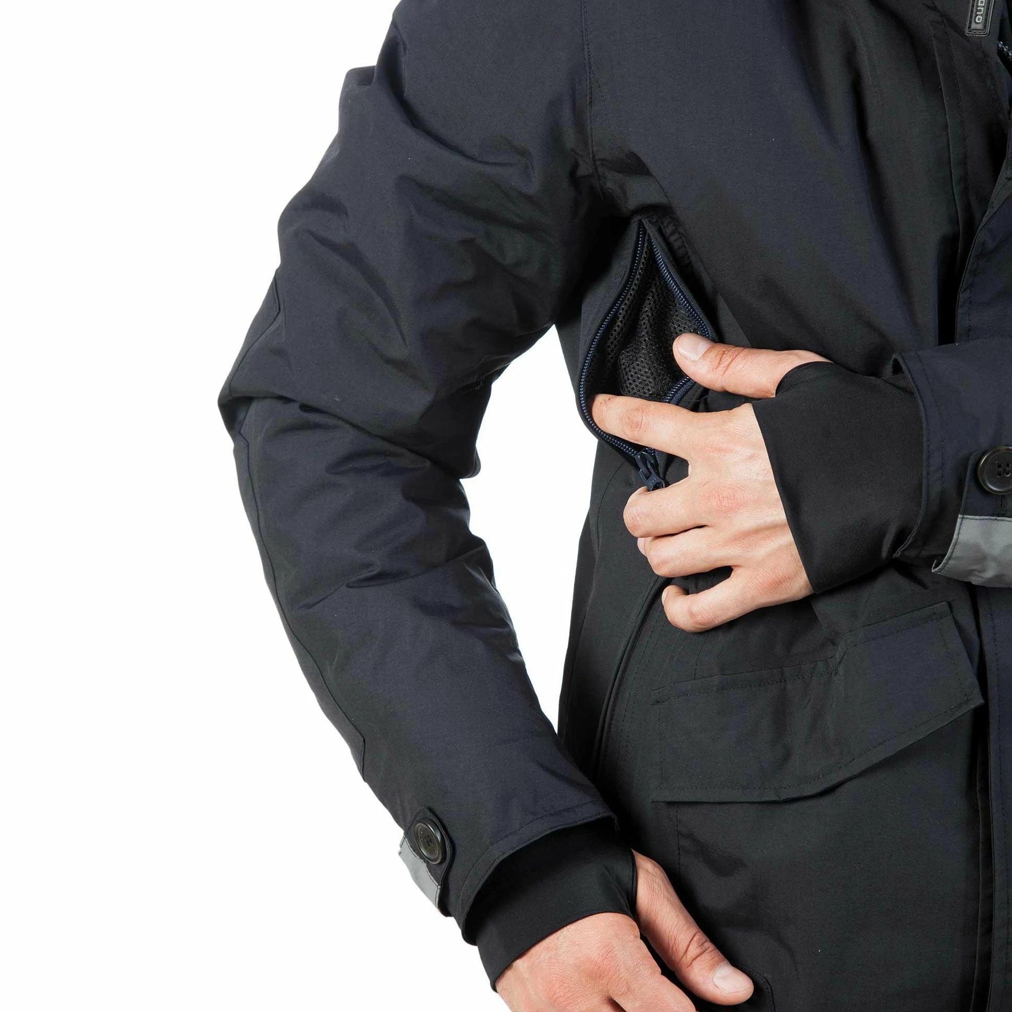 En plus de son aspect 2 en 1, la veste Magic Tucano Urbano offre de nombreux éléments de sécurité et de confort. Le col montant protège la nuque du vent et du froid. La fermeture éclair avant est protégée par un rabat avec boutons pression. Les poignets coupe-vent avec œillets pour le pouce se resserrent pour empêcher l’air de rentrer à ce niveau. Gros atout, une veste thermique détachable est présente à l’intérieur de la veste.