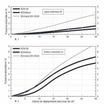 La dynamo qui équipe cette roue est de la marque SON avec le modèle SONdelux. Elle produit un courant dont la tension est de 6 V et la puissance de 3 W. Aux normes allemandes pour les éclairages de vélo, cette dynamo alimente un feu avant de vélo exclusivement à LEDs, comme par exemple le feu Lumotec IQ Cyo de la marque Busch and Muller. Cette dynamo est conçue pour fournir 65% de sa puissance maximale dès 15 km/h.